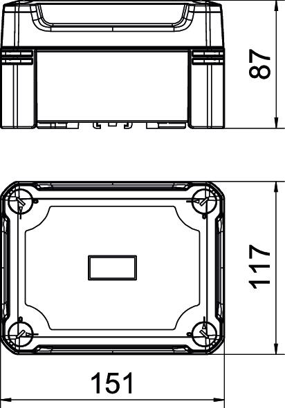 Kabelabzweigkasten zum Verbinden von Kabeln und Leitungen im Innen- und Außenbereich. Rechteckige Form ohne Einführungen. Geeignet für die Wand-/ Deckenmontage mit der Möglichkeit zur Außenbefestigung, Innenbefestigung oder Montage über die Eckdome. Besonders schlagfest mit IK09. Deckel mit Schnellverschluss, plombierbar. Hergestellt aus halogenfreien und UV-resistenten Materialien.