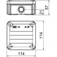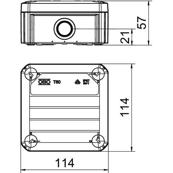 Kabelabzweigkasten gemäß DIN EN 60670. Flammwidrig nach DIN EN 60695-2-11, Prüftemperatur 650°C. Schlagfestigkeit IK07 gemäß DIN EN 50102. Schutzklasse IP67 möglich bei Befestigung über die Eckdome.