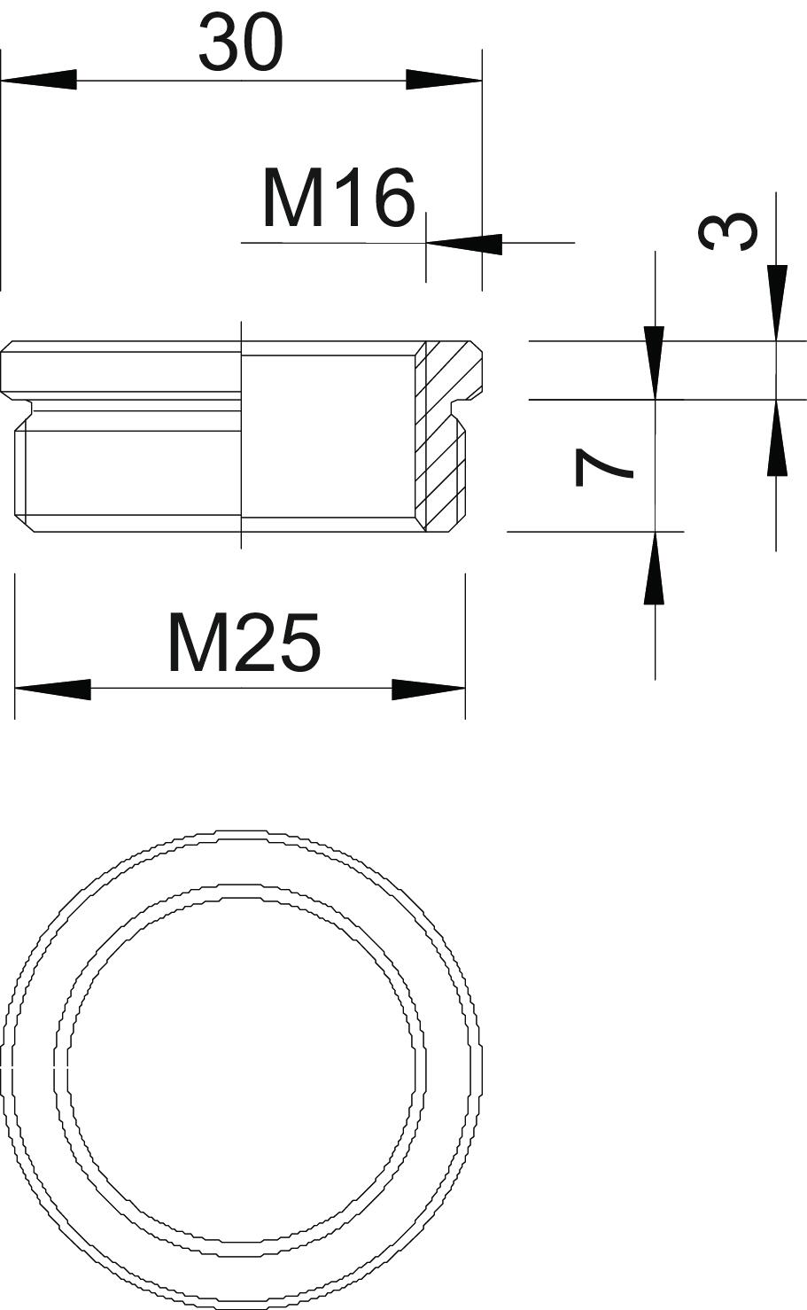 Reduktion (Teil H) ähnlich DIN 46320, mit metrischem Gewinde nach DIN EN 60423 bzw. ISO 68.