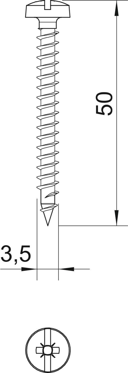 Stahl gehärtet, galvanisch verzinkt und hostaflonbeschichtet. Panhead mit kombiniertem Kreuz- und Schraubendreherschlitz (Pozidrive Gr. 2 außer Ø 6 mm Pozidrive Gr. 3).