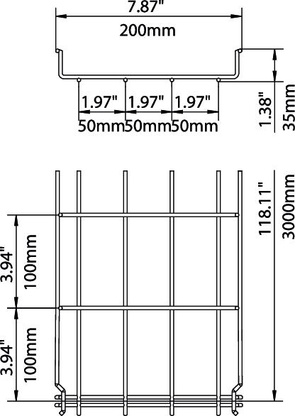 Gitterrinne mit angeformtem Verbinder in der Seitenhöhe 35 mm.