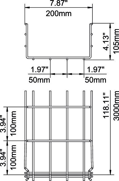 Für die Gitterrinne werden keine zusätzlichen Verbinderbauteile benötigt, sie wird einfach inneinandergesteckt. Die Maschenweite beträgt 50 x 100 mm.