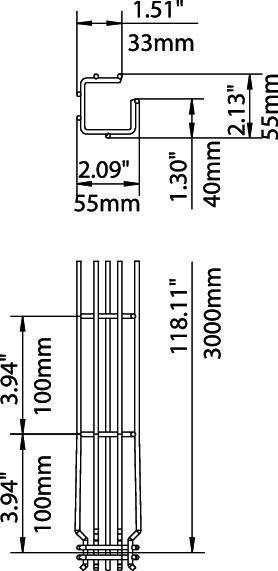 Gitterrinne in G-Form aus punktgeschweißten Stahldrähten mit unterschiedlichen Seitenhöhen und Breiten.
