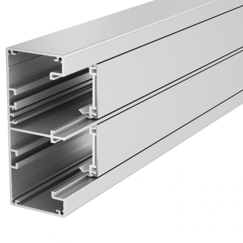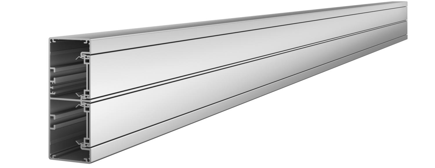 Geräteeinbaukanal Aluminium komplett bestehend aus Unter- und Oberteil. Das Unterteil ist ohne Bodenlochung.