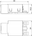 Anschlussmodul Kat. 6 geschirmt, mit einem RJ45-Steckplatz. Inklusive einer EMV-Schirmhaube, einer Staubschutzkappe, einem Kabelbinder und einer Montageanleitung. Geeignet für den Einbau in Datentechnikträger Typ DTG-2RM und DTS-2RM.