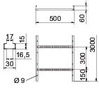 Kabelleiter mit gelochtem Seitenholm in der Seitenhöhe 60 mm mit eingenieteten, nach oben offenen C-Profil-Sprossen (Ausführung VS).