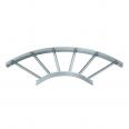 Kabelleiter in Seitenhöhe 60 mm mit eingeschweißten, nach oben offenen C30 Profilsprossen. Eingerollter Seitenholm zur Verstärkung und als Kantenschutz. Die Befestigung auf dem Ausleger erfolgt mit Klemmstücken Typ LKS 40. Das Schlitzmaß der Sprosse beträgt 16,5 mm, die passende Bügelschelle ist der Typ BS-H....