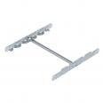 Kabelleiter in Seitenhöhe 60 mm mit eingeschweißten, nach oben offenen C30 Profilsprossen. Eingerollter Seitenholm zur Verstärkung und als Kantenschutz. Die Befestigung auf dem Ausleger erfolgt mit Klemmstücken Typ LKS 40. Das Schlitzmaß der Sprosse beträgt 16,5 mm, die passende Bügelschelle ist der Typ BS-H....