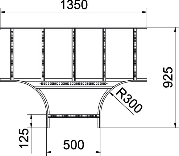 T-Stück, horizontal,mit geschweißter Sprosse für alle Kabelleitertypen mit der Seitenhöhe 110 mm.