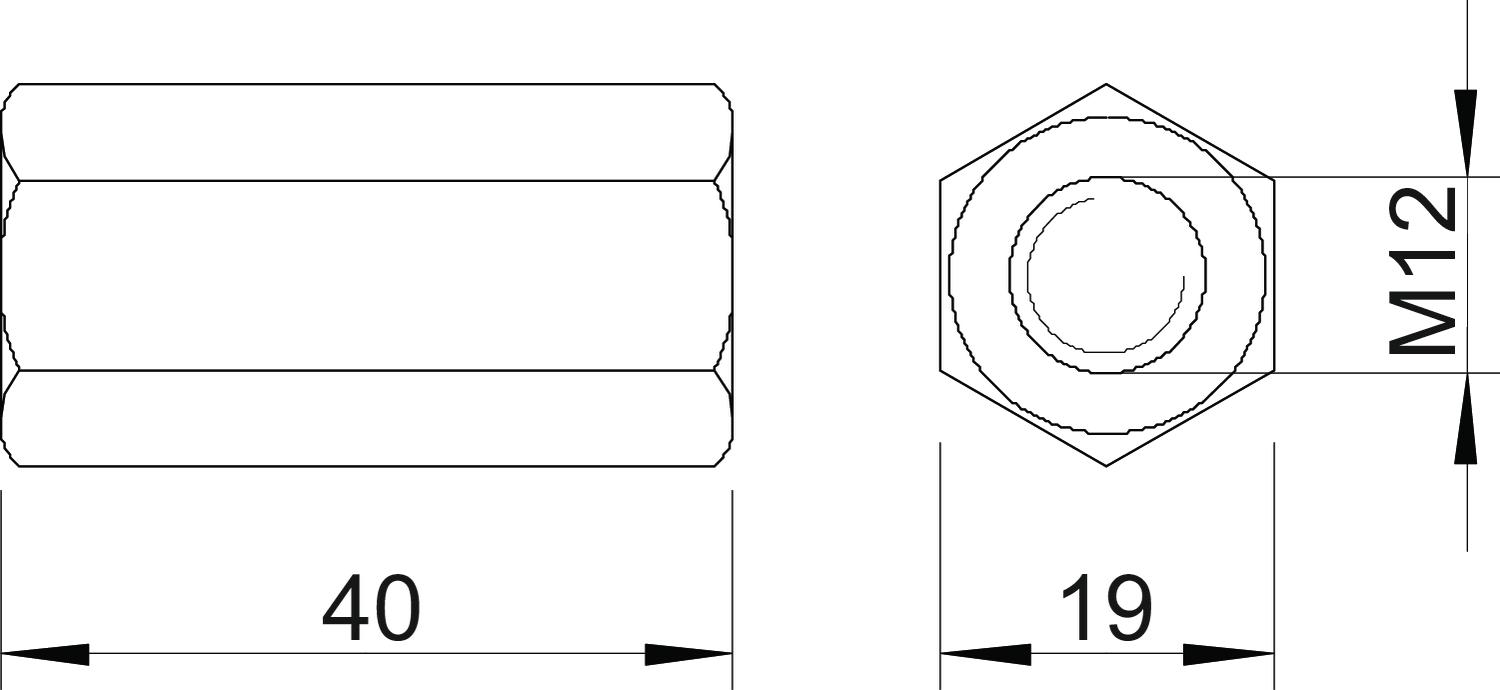 Verbindungsmuffe mit durchgehendem Innengewinde.