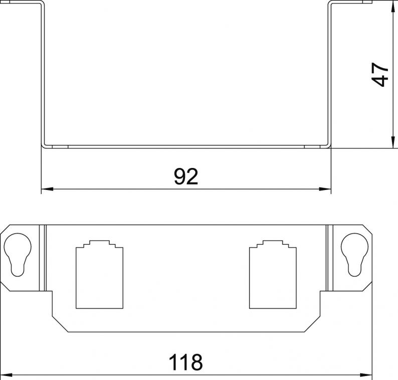 Montageträger zur Aufnahme von zwei Daten-Anschlussmodulen folgender Typen BTR: E-DAT; Dätwyler: MS und MS-N; Kerpen: VarioKeystone.