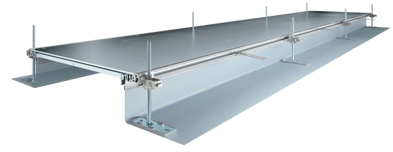 Montagefertige Kanaleinheit estrichbündig zur Leitungsführung, bestehend aus 3 Systemdeckeln, zwei Seitenprofilen mit angesetzter flexibler Seitenwand aus Metallgewebe, Bodenbelaganlegeprofilen mit H = 3 mm. Für trockene Räume im Innenbereich mit trocken gepflegten Fußböden. Mit entsprechenden Systemzubehör auch für nass gepflegte Böden geeignet. Im Lieferumfang enthalten sind 6 höhennivellierbare Befestigungswinkel, 6 Estrichanker und 3 Deckelstoßdichtungen bei Kanalnennbreiten 200, 300 und 400 oder 6 Deckelstoßunterstützungen bei Kanalbreiten 500 und 600. Die unbedingt erforderlichen Nivelliereinheiten (bitte Nivellierhöhe beachten) für die Deckelstoßunterstützungen 400, 500 und 600 sind nicht im Lieferumfang enthalten, bitte separat bestellen. Die Kanaldeckel sind bei der Lieferung verschraubt.