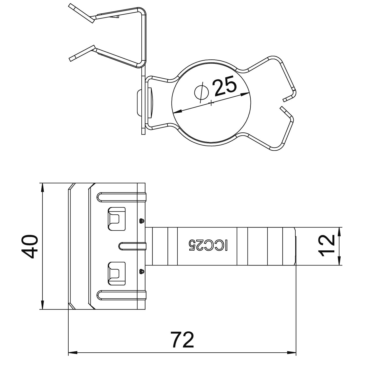 Trägerklammer zum Montieren von Rohren. Geschlossene Rohraufnahme seitlich. Befestigung an Stahträgern durch Aufschlagen.