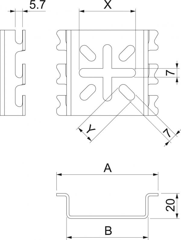 Montageplatte zur schraubenlosen Wandbefestigung von Gitterrinnen.