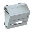 Multimediaträger für einen DVI Steckverbinder, Kabelauslass schräg, mit Beschriftungsfeld, ohne Steckverbinder. Trägerplatte mit Rastbefestigung, geeignet für den waagerechten und senkrechten Einbau in die Systemumgebung.