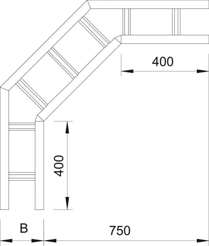 Bogen 90°, horizontal, für alle Weitspannkabelleitern mit der Seitenhöhe 200 mm.