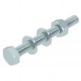 Sechskantschraube zur universellen Befestigung von Konstruktionsbauteilen. Inklusive Sechskantmutter und 2 Unterlegscheiben.