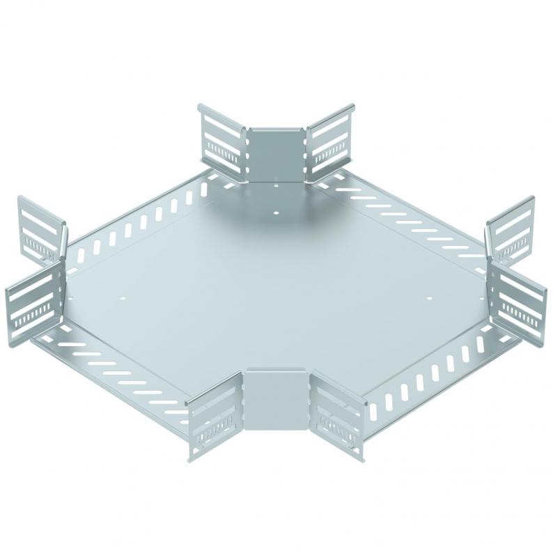 Kreuzung zum Erstellen einer horizontalen Abzweigung, Formteil für rast- und schraubbare Kabelrinnen Seitenhöhe 85 mm. Schraubenlose Montage mit Doppelklemmen oder Schraubverbindung mit Flachrundschrauben FRS und Kombimuttern M6. Einsetzbar im Innenbereich. Befestigungsmaterial muss separat bestellt werden.