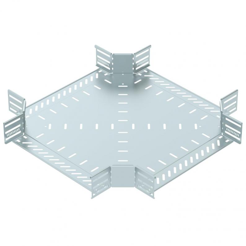 Kreuzung zum Erstellen einer horizontalen Abzweigung, Formteil für rast- und schraubbare Kabelrinnen Seitenhöhe 85 mm. Schraubenlose Montage mit Doppelklemmen oder Schraubverbindung mit Flachrundschrauben FRS und Kombimuttern M6. Einsetzbar im Innenbereich. Befestigungsmaterial muss separat bestellt werden.