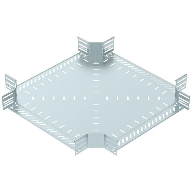 Kreuzung zum Erstellen einer horizontalen Abzweigung, Formteil für rast- und schraubbare Kabelrinnen Seitenhöhe 85 mm. Schraubenlose Montage mit Doppelklemmen oder Schraubverbindung mit Flachrundschrauben FRS und Kombimuttern M6. Einsetzbar im Innenbereich. Befestigungsmaterial muss separat bestellt werden.