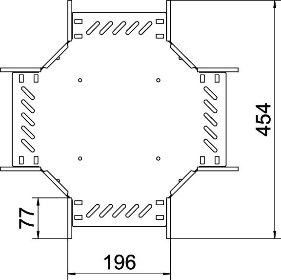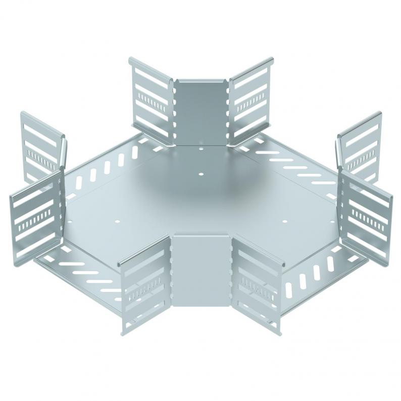 Kreuzung zum Erstellen einer horizontalen Abzweigung, Formteil für rast- und schraubbare Kabelrinnen Seitenhöhe 110 mm. Schraubenlose Montage mit Doppelklemmen oder Schraubverbindung mit Flachrundschrauben FRS und Kombimuttern M6. Einsetzbar im Innenbereich. Befestigungsmaterial muss separat bestellt werden.