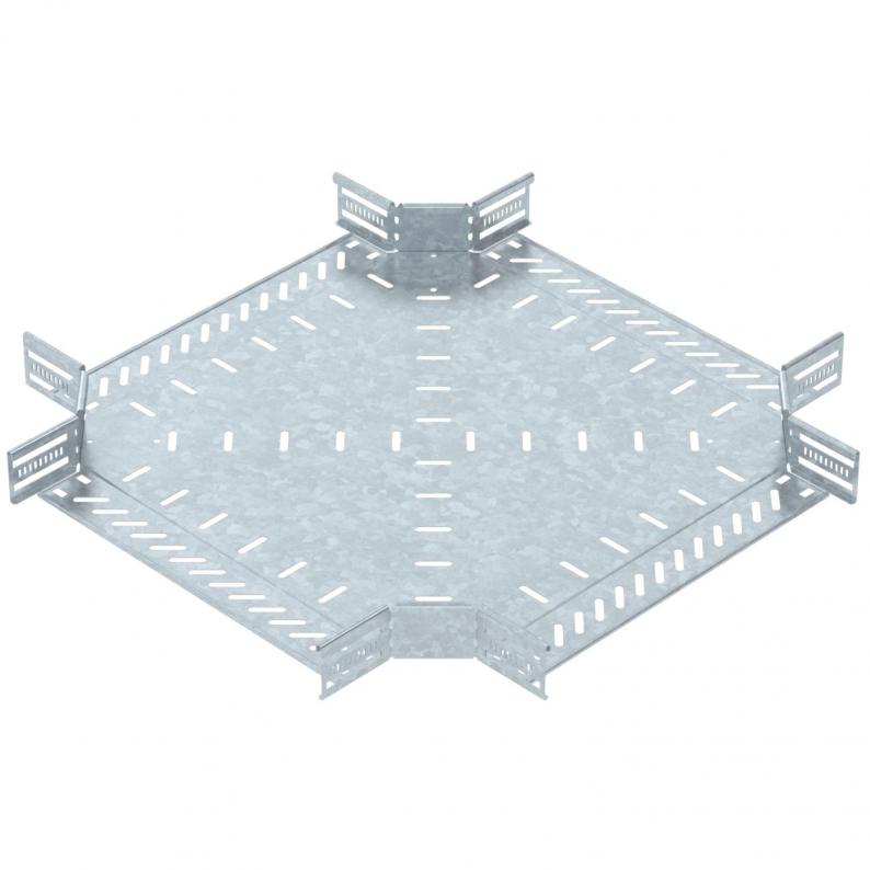 Kreuzung zum Erstellen einer horizontalen Abzweigung, Formteil für rast- und schraubbare Kabelrinnen Seitenhöhe 60 mm. Schraubenlose Montage mit Doppelklemmen oder Schraubverbindung mit Flachrundschrauben FRS und Kombimuttern M6. Einsetzbar im Innen- und Außenbereich. Befestigungsmaterial muss separat bestellt werden.