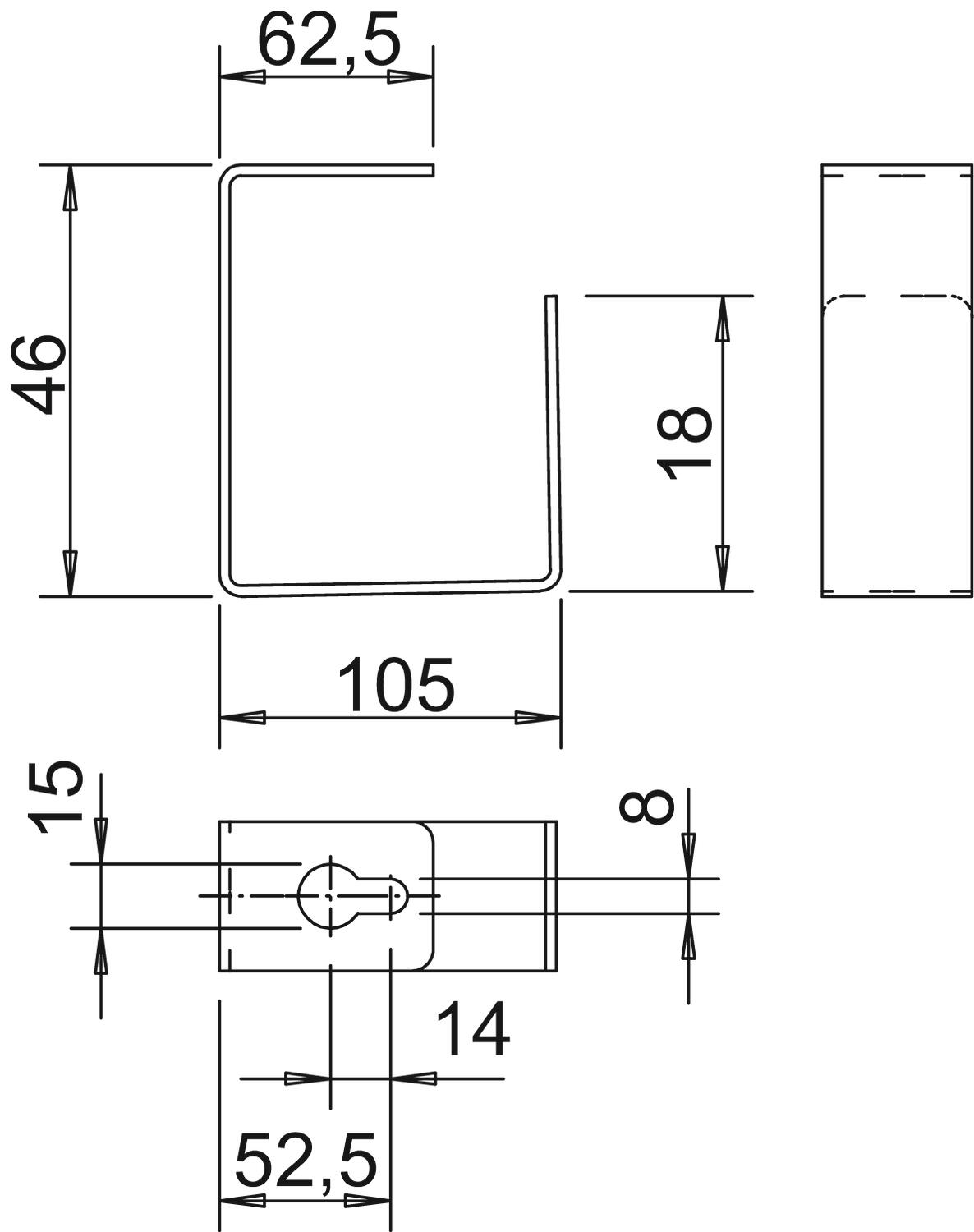 Trennbügel als Installationshilfe bei Deckenmontage des Brandschutzkanals PYROLINE® Con D BSK, Typ BSK 090521 und Typ BSK 120521. Montage des Bügels direkt an den Befestigungsdübeln des Brandschutzkanals.