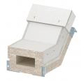Vertikalbogen steigend für Brandschutzkanal PYROLINE® Con S, Typ BSKH09-K0511 bestehend aus wasser- und frostbeständigen Glasfaserleichtbeton zur Herstellung von vertikalen Richtungsänderungen (45°) im Kanalverlauf. Fertig montierte Verbindungsbeschläge sorgen für eine schnelle Montage vor Ort, lose aufgelegte Deckel für eine schnelle Revision und Nachbelegung.