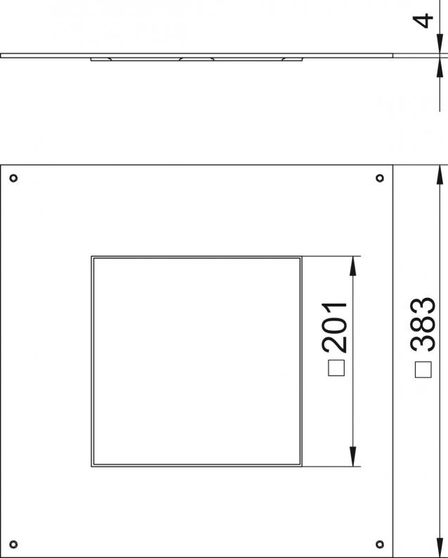 Montagedeckel für Unterflur-Zug- und Abzweigdosen vom Typ UZD350-3 und UZD350-4 zum Einbau oder Aufbau einer Einbaueinheit. Einbauöffnung 3 mm vertieft zum nachträglichen Blindverschluss mit Deckelblindplatte.