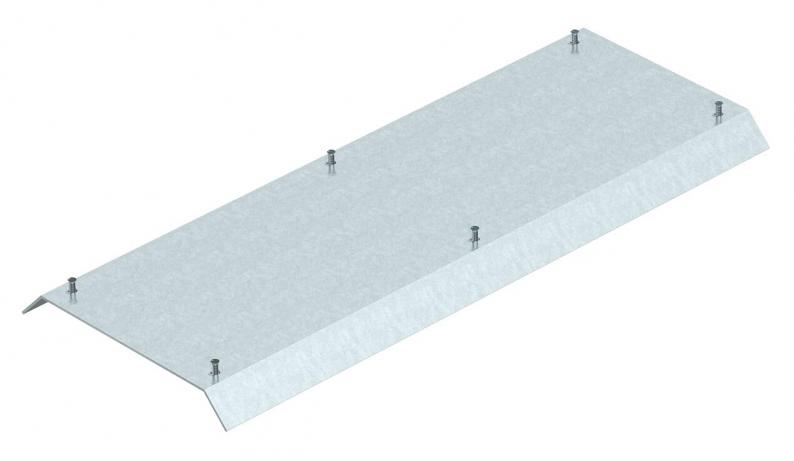 Aufflur-Blinddeckel zum Abdecken des Aufflur-Abzweigkanals AIK/A, passend zu den Kanalunterteilen AIK/U. Der Kanaldeckel wird in den Al-Seitenprofilen des Kanalunterteils festgeschraubt. Die Deckelschräge überragt das Kanalunterteil im 45°-Winkel.
