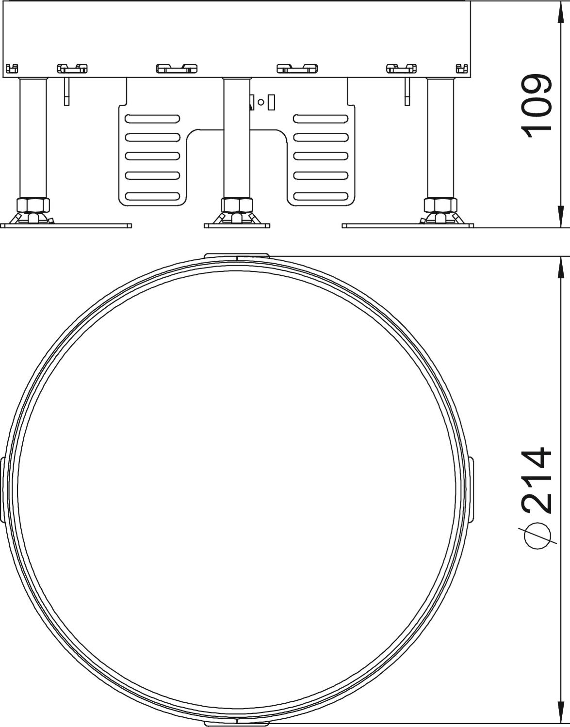 Nivellierbare Schwerlastkassette als Blindkassette mit einer Belastungsklasse von 2-20 kN, 2-zügig. Es können 2 Abdeckplatten APMT2 installiert werden. Für den Einbau von 2 Universalträgern UT3 für 4 Einzel-Installationsgeräte mit Tragering/Tragebügel oder 6 Modul 45-Geräte im Innenbereich.