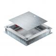 Zug- und Abzweigdose für estrichüberdeckte Unterflur-Installationskanäle mit Seitenwänden aus Stahlblech. Zur Montage von Einbaueinheiten im Montagedeckel (separat zu bestellen). Lässt sich stufenlos mit der Schnellnivellierung auf eine Estrichnennhöhe von 80 - 160 mm nivellieren. Der Estrich kann bündig an die Estrichabzugskante angearbeitet werden. Mit schalltechnischer Entkopplungsmöglichkeit nach der Estrichverlegung und mit Systemzubehör auch für Schwerlastanwendung verwendbar. Einführung der Kabel und Leitungen mit dem 2-teiligen EÜK-Kanal.