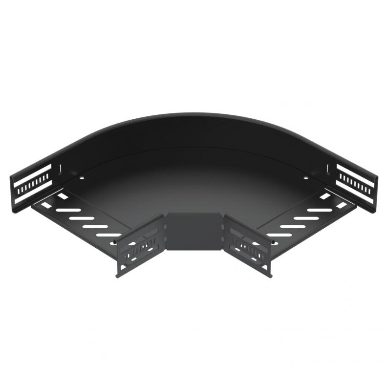 Bogen 90°, horizontal, Formteil für alle Kabelrinnentypen mit der Seitenhöhe 60 mm. Schwarz beschichtet.