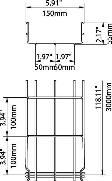 Für die Gitterrinne werden keine zusätzlichen Verbinderbauteile benötigt, sie wird einfach ineinandergesteckt. Die Maschenweite beträgt 50 x 100 mm (Ausnahme GRM 55/50 = 20 x 100 mm).