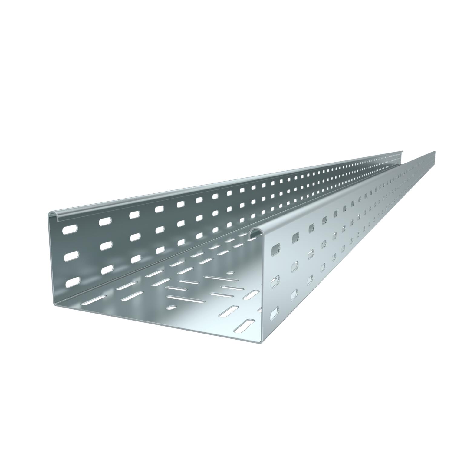 Gelochte Kabelrinne zur Verlegung von Kabeln und Leitungen, speziell geeignet für die Fördertechnik in der Automobilindustrie. Einsetzbar im Innenbereich. Schraubverbindung. Geeignet für direkte und erhöhte Bodenmontage.