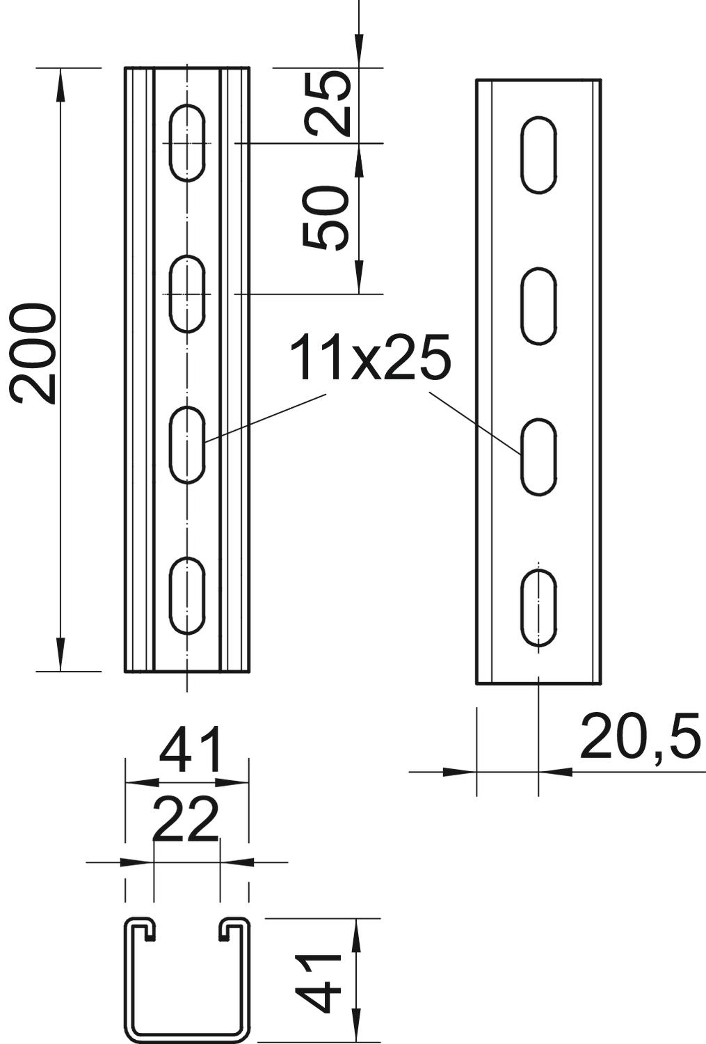 Montageschiene MSL4141, Schlitz 22 mm, FS, gelocht