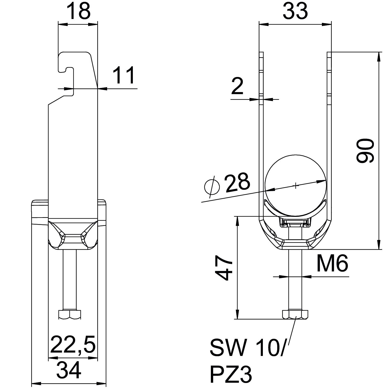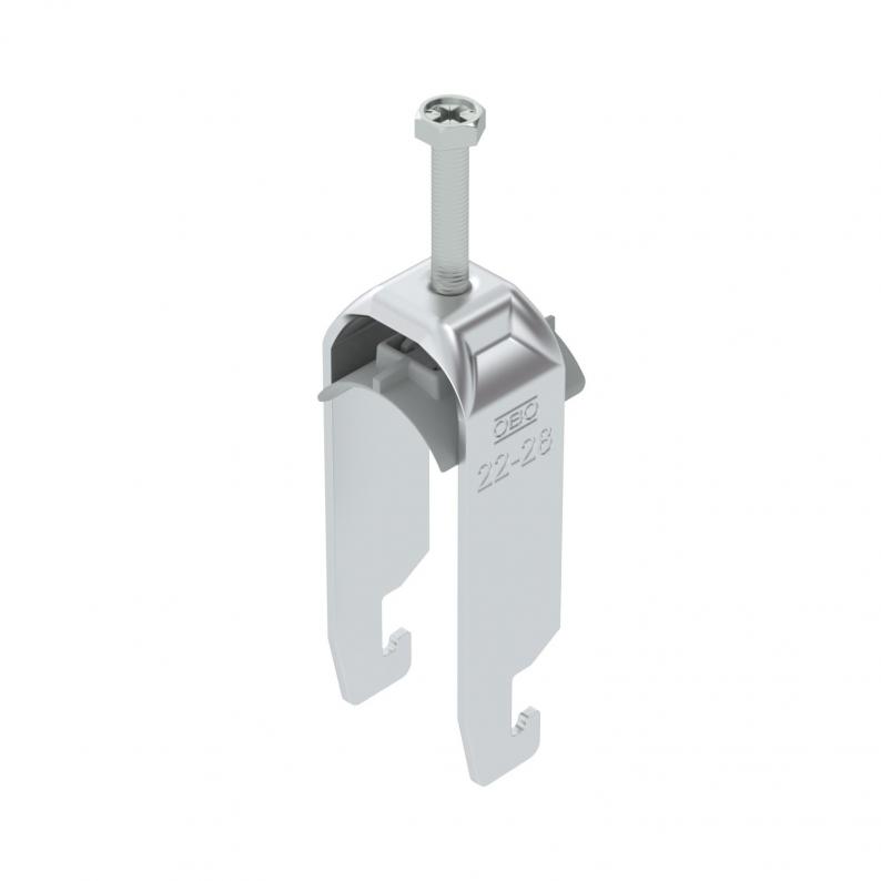 Bügelschelle mit U-Fuß, Kunststoffdruckwanne aus Polypropylen. Zur vertikalen und horizontalen Montage von 2 Einzelkabeln an C-Profilschiene. Für Schlitzweite 18 - 22 mm. Mit 1-gängiger Schraube an Druckwanne, universeller Sechskant-Schraubenkopf SW10, mit Schlitz und Kreuzschlitz. Geeignet für Montage im Innen- und Außenbereich. Mehrere Kabel sollten durch Doppelwannen getrennt werden. Der Einsatz einer Gegenwanne wird empfohlen.