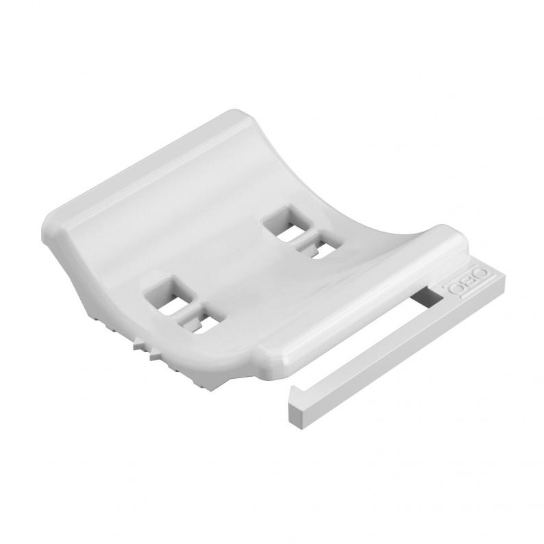 Unabhängig von der Schiene, universell einsetzbar durch Aufschieben auf einen Schenkel der Bügelschelle. Durch eine intelligente Kontur auf der Rückseite, kombinierbar zur Doppelwanne. Nachträgliche Installation ohne Demontage der Bügelschelle möglich.