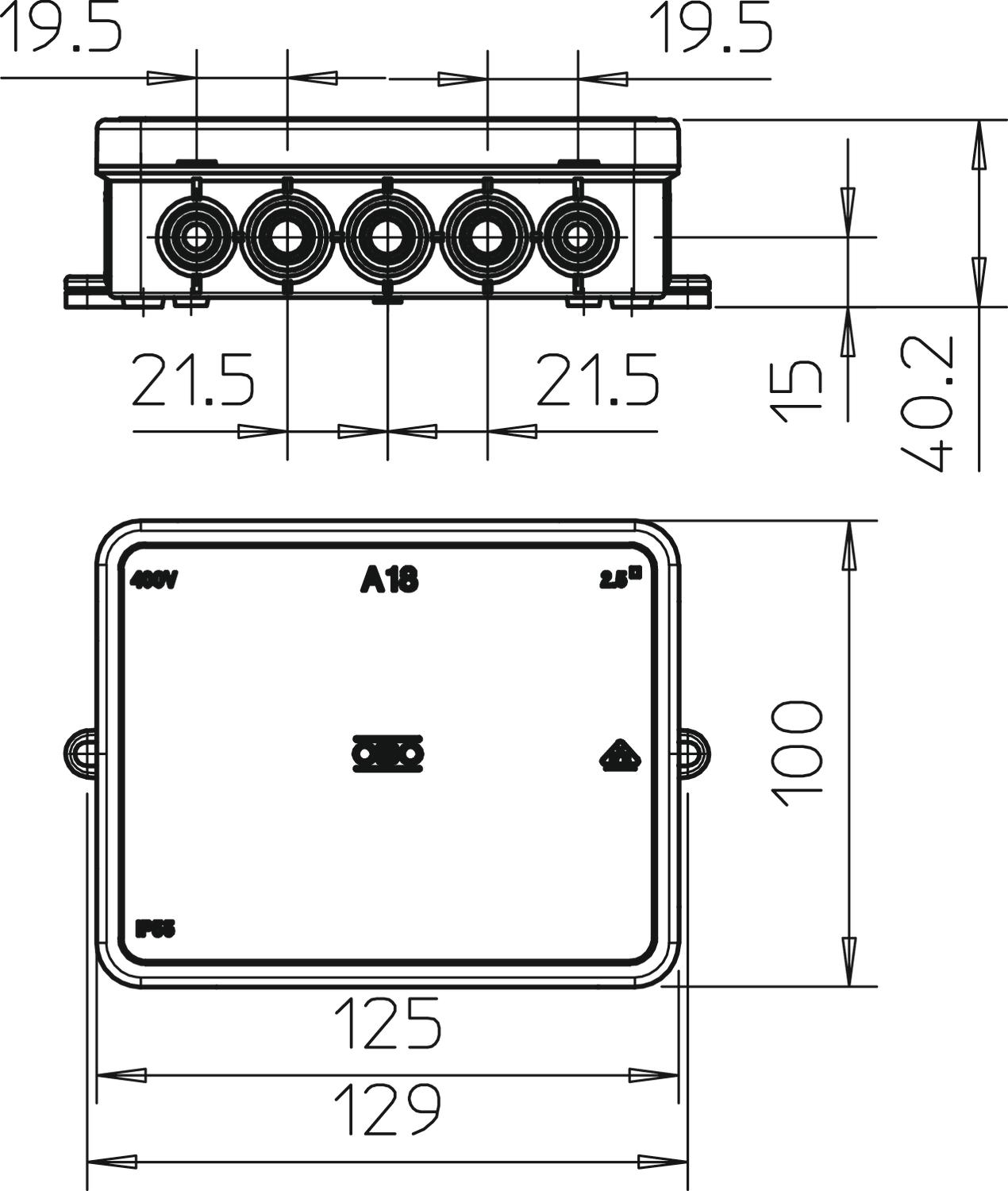 Schutzart IP55, Nennspannung 690 V, Nennquerschnitt 2,5 mm², 10 Einführungen für Kabeldurchmesser 5-14 mm