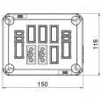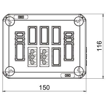 Steckbarer Deckel zum Verschließen von Kabelabzweigkästen, bestückt mit 2 Wieland GST18-Stecksystemen, vorverdrahtet mit Hebelsteckklemmen. Mit Schnellverschluss im Deckel, plombierbar. Halogenfreies Material, UV-resistent. Flammwidrig nach DIN EN 60695-2-11, Prüftemperatur 650°C. Schlagfestigkeit IK07 bei Raumtemperatur. Schutzart IP30.