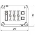 Steckbarer Deckel zum Verschließen von Kabelabzweigkästen, bestückt mit 3 Wieland GST18-Stecksystemen, vorverdrahtet mit Hebelsteckklemmen. Mit Schnellverschluss im Deckel, plombierbar. Halogenfreies Material, UV-resistent. Flammwidrig nach DIN EN 60695-2-11, Prüftemperatur 650°C. Schlagfestigkeit IK07 bei Raumtemperatur. Schutzart IP30.