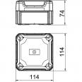 Kabelabzweigkasten geschlossen zum Verbinden von Kabeln und Leitungen im Innenbereich und geschützten Außenbereichen. Quadratische Form ohne Einführungen. Geeignet für die Wand-/ Deckenmontage und die Montage auf Montageblechen. Mit der Möglichkeit zur Innenbefestigung und Montage über die Eckdome. Hoher Deckel mit Schnellverschluss, plombierbar. Hergestellt aus halogenfreien und UV-resistenten Materialien.