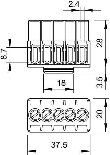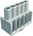 Klemmkörper und Schrauben aus Stahl, galvanisch verzinkt und transparent passiviert, Nennquerschnitt 1 ÷ 4 mm², Nennspannung 400 V, 5-polig, mit Buchsenklemmen max. anschließbare Querschnitte je Klemmstelle max. 4x2,5mm², 5x1,5mm² oder 6x1mm².