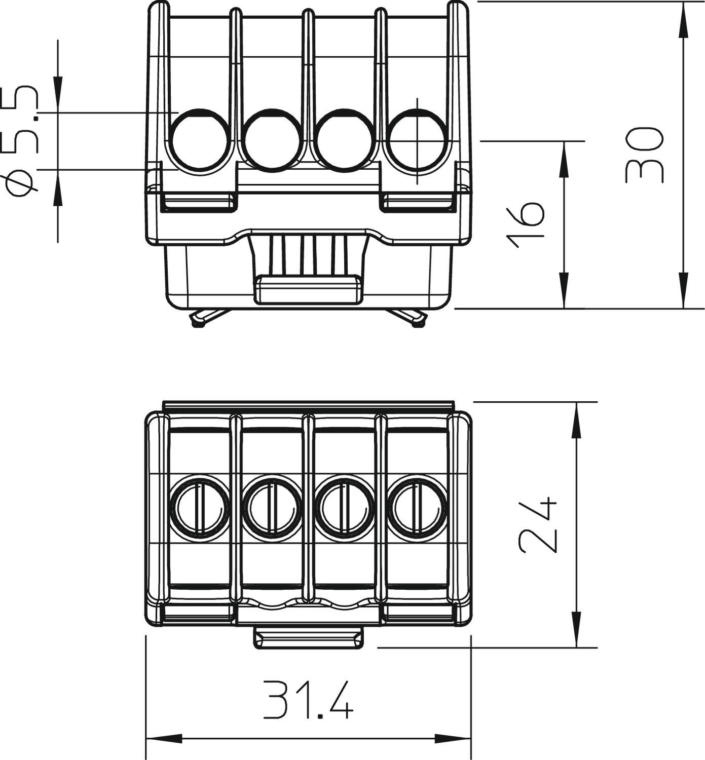 Klemmen Messing, Schrauben Stahl, galvanisch verzinkt und transparent passiviert, Nennquerschnitt 6 ÷ 16 mm², Nennspannung 400 V, 1-polig, mit Buchsenklemmen max. anschließbare Leiter je Klemmstelle max. 4x16mm², 4x10mm², 8x6mm² oder 12x4mm².