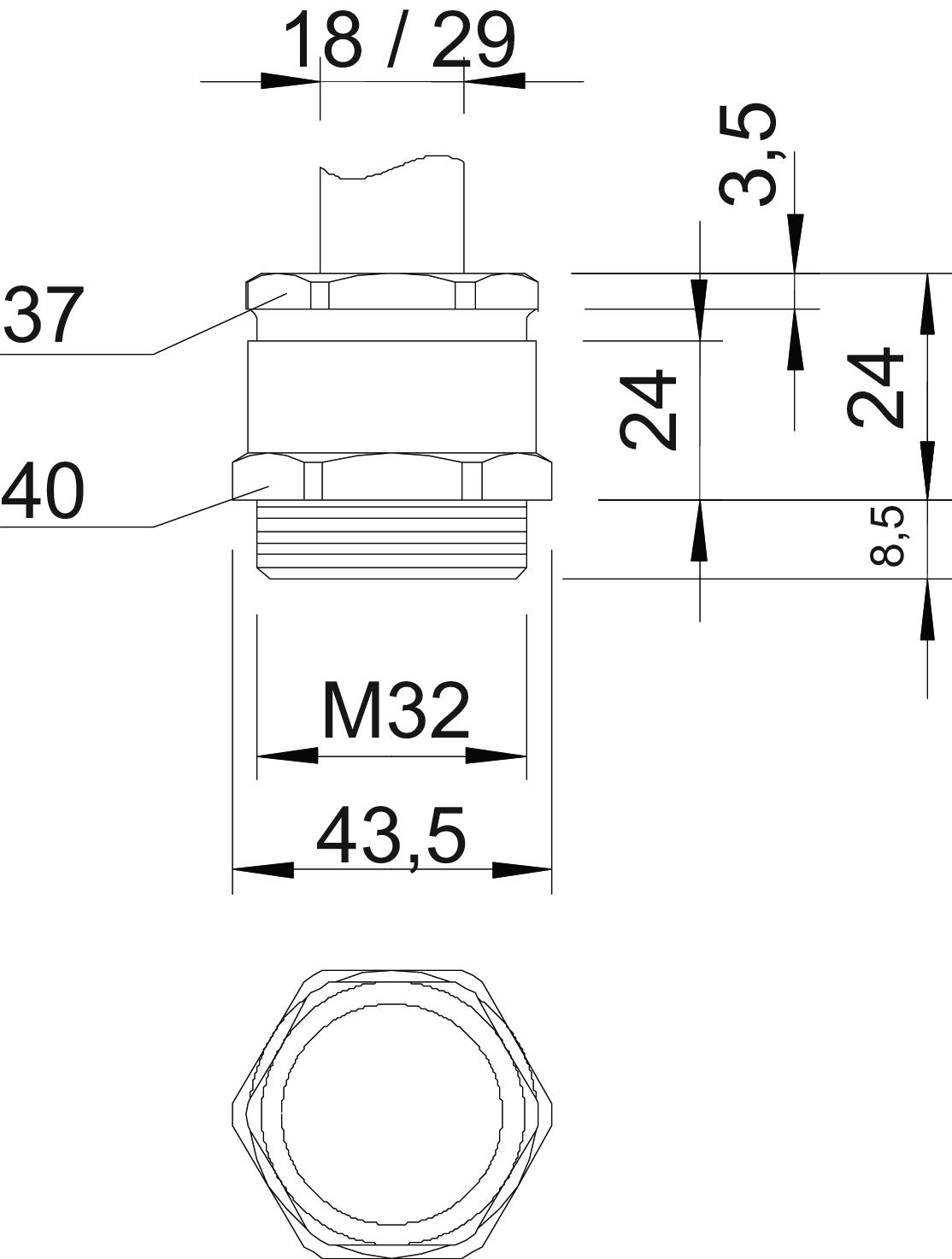 | Dichtbereich D min. | 18 mm |