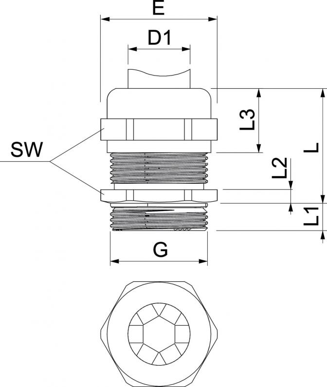 Robuste EMV Kabelverschraubung mit metrischem Anschlussgewinde nach IEC 423 in Hutmutterbauart für hohe Dichtigkeitsansprüche. Die Kontaktierung zwischen Verschraubung und Schirmgeflecht erfolgt über eine Kontaktfeder. Zugentlastung, Verdrehschutz und Dichtigkeit über den gesamten Spannbereich. Dichtring aus Neopren. Klemmeinsatz aus Polyamid. Mit vormontiertem O-Dichtring am Anschlussgewinde, Schutzart IP68 bei 5 bar/1 h.