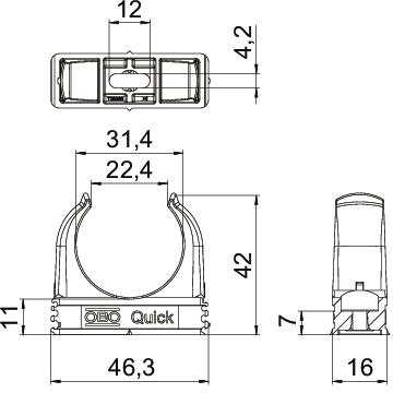 Flammwidrige Aufputzschelle zur Aufnahme von metrischen Stahlpanzerrohren, leichten und schweren Isolierrohren sowie Elektroinstallationsrohr Quick-Pipe. Universelle Befestigungsmöglichkeiten an Wand und Decke im Innen- und geschützten Außenbereich. Mit Langloch zum seitlichen Ausrichten bei Montage mit Holzschraube oder Schlagdübel. Werkzeuglose Rohrmontage. Aneinander reihbar auch mit OBO Multi-Quick- oder proQuick-Schelle. Größe M16 - M32 kann auf Gewinde M6 geschraubt werden. Befestigungsabstand 50 - 60 cm, max. Auszugswerte F bei 20° C Raumtemperatur siehe Tabelle.