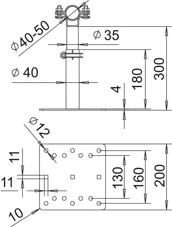 Träger isFang für Wandmontage, 200-300 mm Abstand