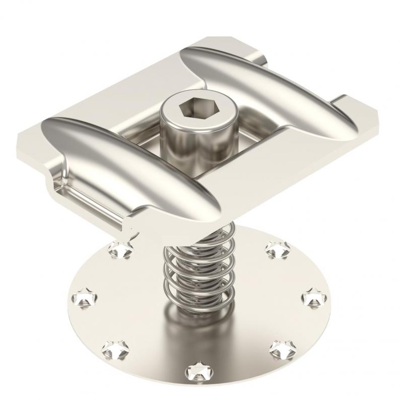 Zwischenklemme mit Feder zum Befestigen von Photovoltaik-Modulen auf Trägerprofilen. Geeignet für Schlitzweite 10 mm. Schraubbare Befestigung des PV-Moduls mit Innensechskant-Schlüssel Größe 6.