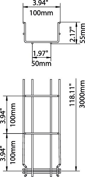 Für die Gitterrinne werden keine zusätzlichen Verbinderbauteile benötigt, sie wird einfach ineinandergesteckt. Die Maschenweite beträgt 50 x 100 mm (Ausnahme GRM 55/50 = 20 x 100 mm).